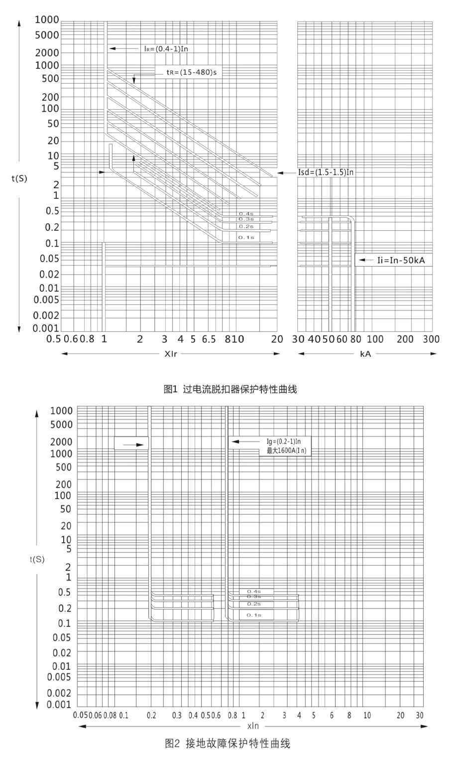 5.1过电流脱扣器保护特性曲线见图1;接地故障保护特性曲线见图2。