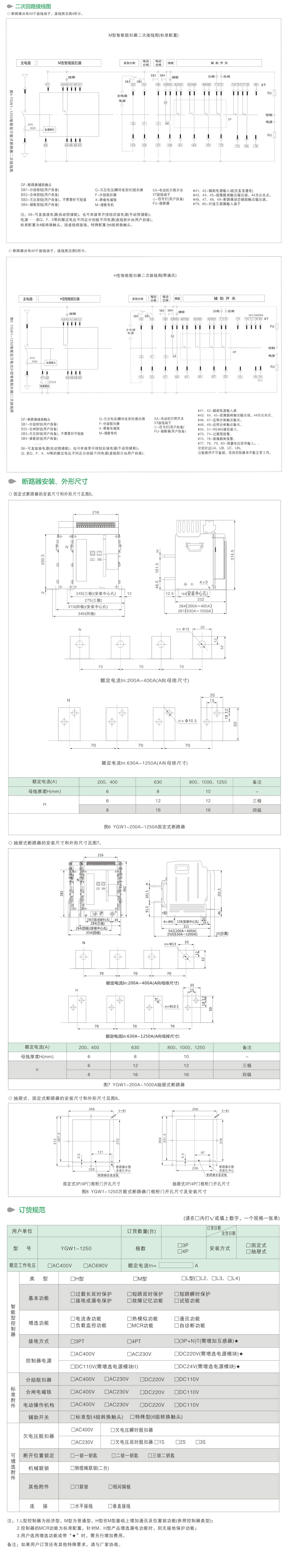 YGW1-1250智能型万能式断路器(以下简称断路器),适用于交流50Hz,额定电压400V(380V),额定电流200~1250A的配电网络中,主要用来分配电能和保护线路及电源设备免受过载、短路、欠电压、单相接地等故障的危害。在正常条件下可作线路的不频繁转换之用,也可作为电动机的不频繁起动及保护之用。