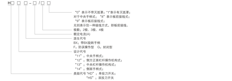 HD系列单投刀开关、HS系列双投刀开关适用于交流50Hz、额定电压380V、直流220V,额定电流至1500A的成套配电系统装置中,用作手动不频繁接通与分断交、直流电路或用作为电气隔离之用HD(S)11系列中央手柄式刀开关主要用于动力站,不切断带有电流的电路,作为电气隔离之用。
