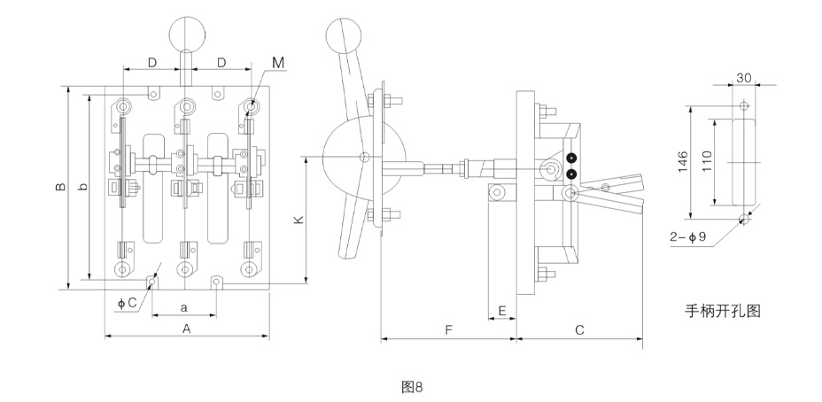 HD13系列开关外形与安装尺寸见图7及表8。