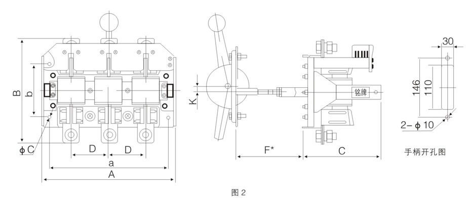 HR3-100~1000/32外形与安装尺寸见图2表2