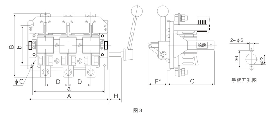 HR3-100~1000/33外形与安装尺寸见图3表3